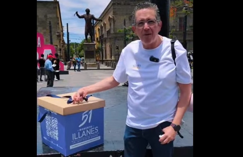 El candidato a ministro de la Suprema Corte de Justicia de la Nación, Roberto Illanes Olivares, inició en el Centro Histórico de Guadalajara la dinámica conocida como La Caja Morada, con la que busca escuchar directamente a la ciudadanía sobre sus preocupaciones, dudas y opiniones respecto al Poder Judicial.